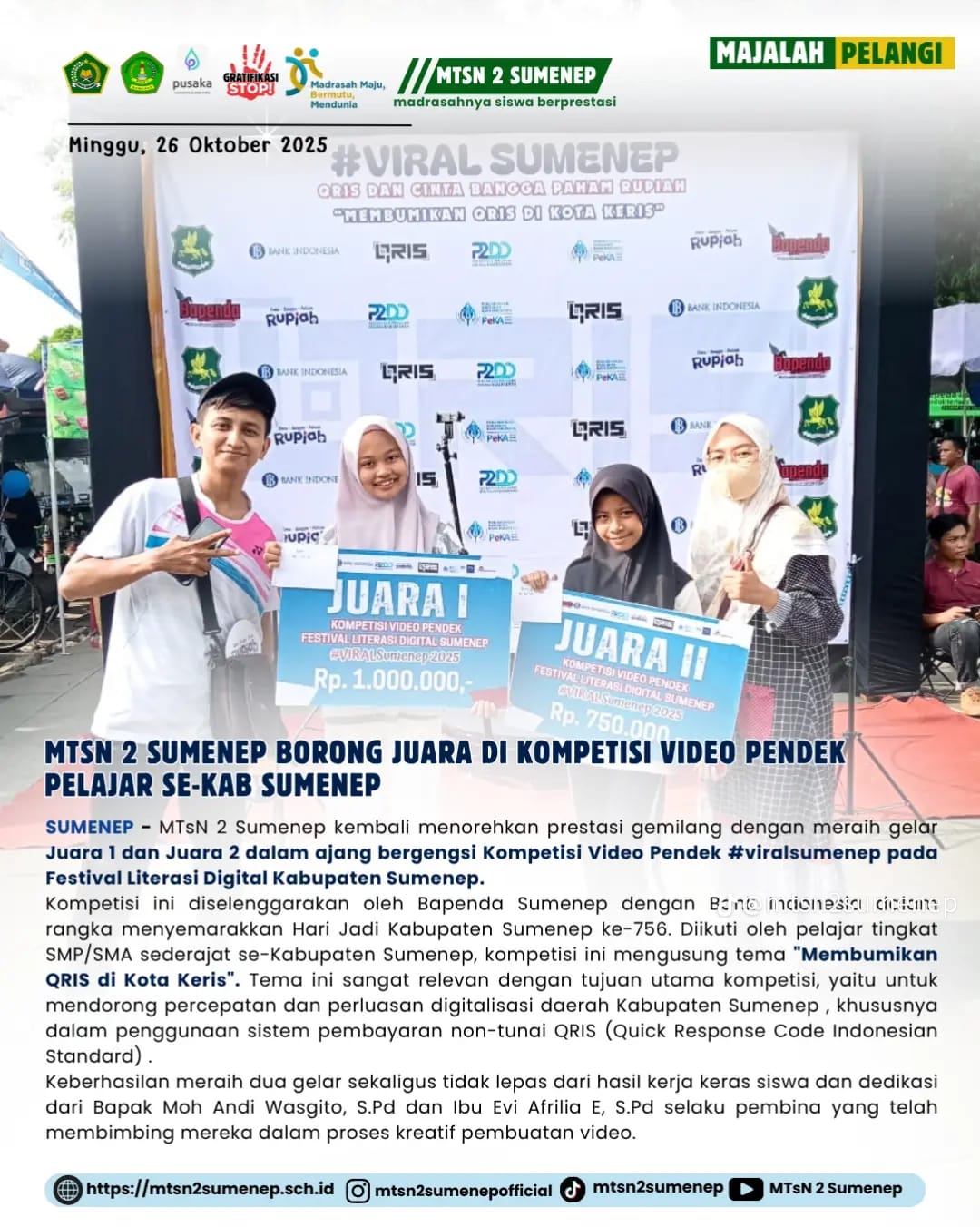 MTsN 2 Sumenep meraih juara 1 dan 2 pada Kompetisi Video Pendek Pelajar Se-Kab Sumenep